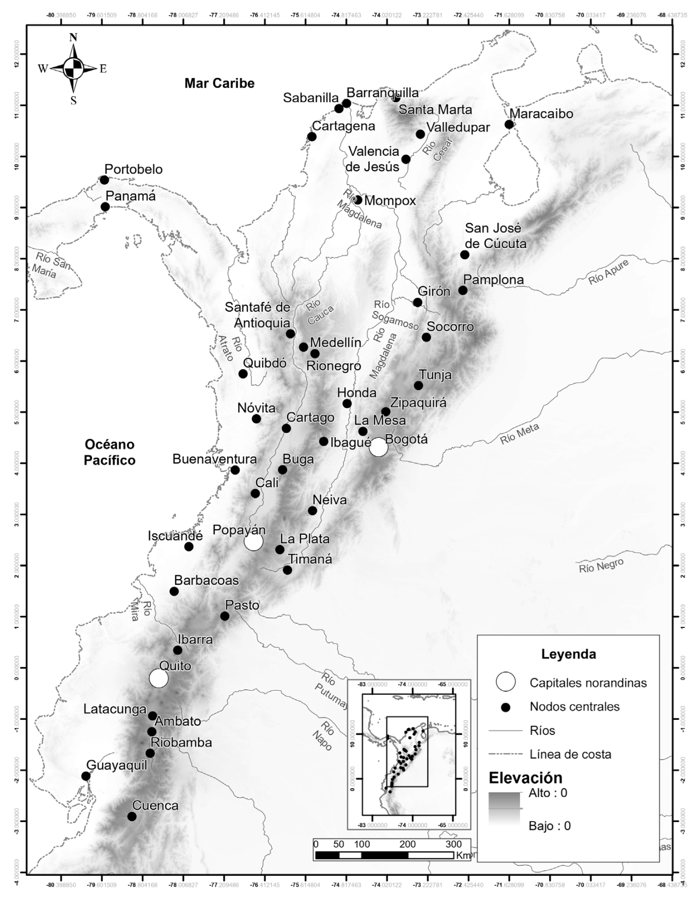 En cuanto a la forma de este artículo, lo hemos dividido en tres partes. En la primera y en la segunda se analizan los testamentos, las capellanías, los censos, las dotes y las tutelas de menores de las ciudades mencionadas (figura 1) que reposan en el Archivo de la Notaría Primera de Valledupar, en los que se hace referencia a la cría de ganado vacuno, ya fuera como herencia, dote o hipoteca, y se señalan cuestiones como valores y cantidades registradas en los documentos. Luego, en la tercera parte, se cuantifica la productividad de la zona a partir de las cuentas de diezmos, entre 1787 y 1895 para Valledupar y entre 1786 y 1795 para Valencia de Jesús. Terminamos con unas conclusiones sobre el tema de la productividad de carne en una zona fronteriza de la gobernación de Santa Marta, para lo cual nos concentramos en señalar que esta actividad fue significativa y generó un tejido económico que se observa en documentos como testamentos, capellanías, censos y dotes, entre otros de común uso en el derecho civil.