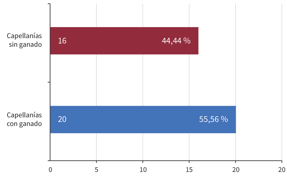 En la masa documental revisada encontramos capellanías y muchos censos en los cuales, como préstamo o como hipoteca, se pignoraba algún tipo de ganado, casi siempre vacuno y, en menor cuantía, caballos y yeguas. Es importante señalar que en las ciudades de Valledupar y Valencia de Jesús se hizo un significativo número de préstamos desde las cofradías, pocos en dinero efectivo, la mayoría en semovientes. En Valencia de Jesús, por ejemplo, identificamos las cofradías de Santísimo Sacramento, Pura y Limpia Concepción, Santa Veracruz y Benditas Ánimas del Purgatorio, y en Valledupar, las de Jesús Nazareno, Nuestra Señora del Rosario, Pura y Limpia Concepción y Benditas Ánimas del Purgatorio.
