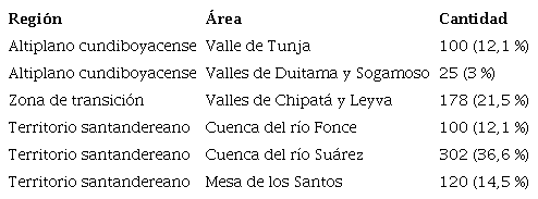La información sobre las fronteras en el periodo tardío se ha obtenido en el marco de estudios centrados en caracterizar la variabilidad estilística de la cerámica funeraria. Estas investigaciones han comparado la producción alfarera de los Andes orientales, con el fin de interpretar las dinámicas de interacción y la identidad de sus artífices (Colorado 38). Los datos discutidos en esta sección corresponden al análisis de 825 objetos que reposan en casas de la cultura, colecciones privadas, laboratorios y museos de la región. Una parte de este material ha sido hallada en el marco de proyectos arqueológicos y trabajos de salvamento. Sin embargo, la mayoría carece de un contexto detallado, pues se ha recuperado tras el expolio de sitios de enterramiento por parte de la población rural. No obstante, es conocido que proviene de las cuencas y los valles que delimitan el altiplano cundiboyacense y el macizo de Santander, por lo que su abordaje permite evaluar las hipótesis relativas a la distribución de fronteras culturales en la zona (tabla 1).