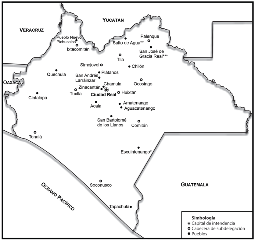 El objetivo general de las reformas borbónicas era llevar a cabo cambios políticos, económicos y administrativos al sistema colonial anterior6. En consecuencia, en 1786 surgieron las intendencias y las subdelegaciones en Chiapas, las cuales significaron una reestructuración territorial (Parrilla, “Conformación”). Con ello, la Corona pretendía ejercer un mayor control sobre el territorio, como, por ejemplo, en lo relativo al empadronamiento de tributarios (Obara y Viqueira 144) y en el cobro de los tributos.