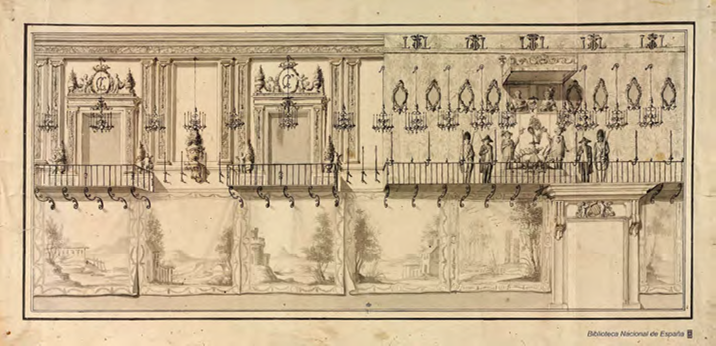 Las proclamaciones y las entradas regias en Madrid han sido ampliamente estudiadas por la historiografía en torno al tema. Debemos destacar los trabajos de María José del Río Barredo o Teresa Zapata Fernández de la Hoz6. En el siglo XVIII asistimos a una mayor importancia de la entrada de los reyes, puesto que hasta ese momento había recibido más atención la de las reinas7. La causa fue el recibimiento del monarca de una nueva dinastía, Felipe V de Borbón, y un nuevo espíritu ilustrado que impuso un cambio en los espacios celebratorios urbanos, prefiriéndose a partir de ese momento los entornos cerrados y ordenados como el teatro, el coso taurino o la plaza porticada. No obstante, el recorrido ceremonial por la urbe, desde la calle de Alcalá hasta el Palacio Real, o a la inversa, en el eje tradicional, se mantuvo, jalonado ahora por vallas ricamente decoradas e iluminadas, arcos efímeros, fuentes y todo tipo de adornos. Para las corridas de toros multitudinarias y con asistencia de los monarcas, los escenarios privilegiados en Madrid fueron la plaza Mayor y la Casa de la Panadería, donde el propio ayuntamiento organizaba corridas, torneos, mascaradas, etcétera, y donde se desplegaban los adornos o los espectáculos más importantes.