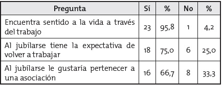 Como se colige de los anteriores testimonios, el sentido de vida puede ser positivo, cosa que ayuda a mantener relaciones armoniosas con los demás, aceptando y preparándose para la jubilación, como etapa de proyección y disfrute.