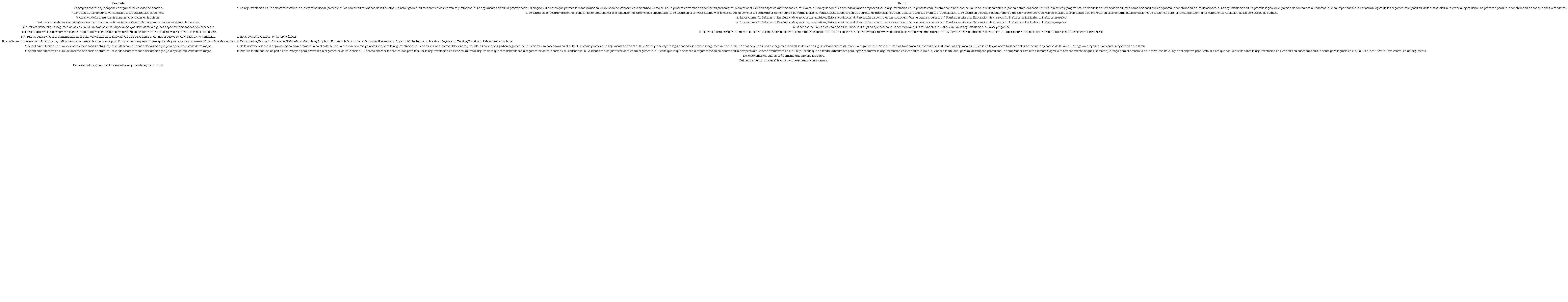 En definitiva, este artículo pretende, con base en los resultados obtenidos en un programa de formación de docentes (licenciatura en Biología y Química de la Universidad de Caldas)1, aportar a la reflexión sobre por qué se considera necesario intervenir y proponer la argumentación como un contenido explícito en la formación de licenciados en este campo de conocimiento. Para ello, se parte del conocimiento y experiencia de los futuros docentes de la licenciatura en Biología y Química, para ver lo que piensan sobre la argumentación en ciencias, junto con el qué, el cómo y el para qué de esta competencia, y para identifica de qué modo su vivencia en el aula los autoriza a cuestionarse qué tan lejos se está de ser mediadores del desarrollo de esta competencia en el aula y de aportar con la enseñanza a dicho objetivo.