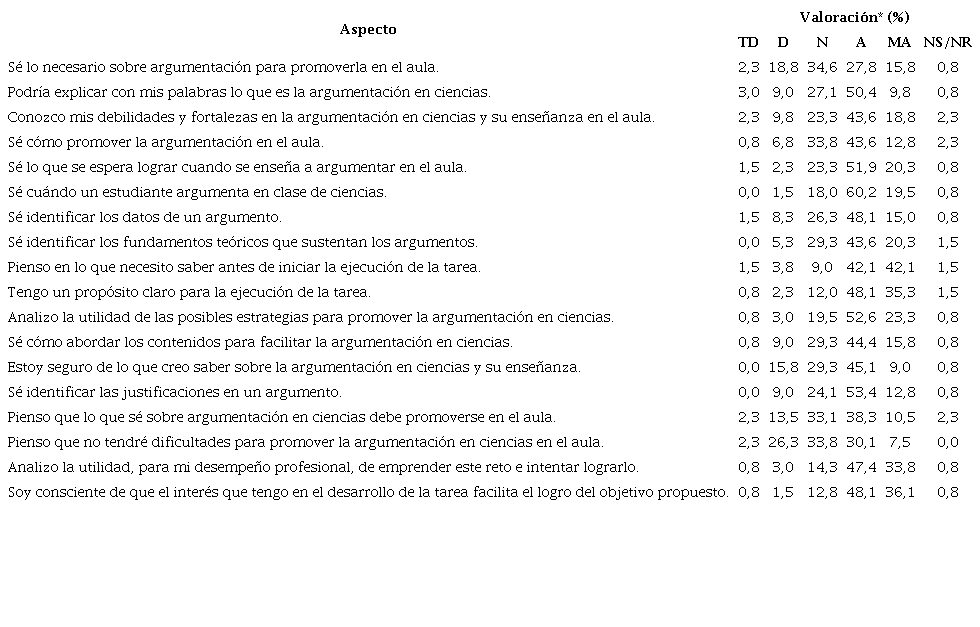 Así mismo, están en desacuerdo con afirmar no tener dificultades para lograr promover la argumentación en ciencias en el aula o creer que, con lo que saben sobre la argumentación en ciencias y su enseñanza, es suficiente para lograrla en el aula.