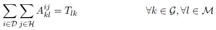 El parámetro Tlk representa la cantidad de horas obligatorias que se deben asignar de la materia l en el grupo k, y las matrices I e IH, denominadas Matriz de Incompatibilidades entre materias y Matriz de Incompatibilidades horarias respectivamente, contienen la información de las materias que son dictadas por el mismo profesor y que por eso no pueden ser asignadas simultáneamente, así como las horas a las cuales cada materia puede o no ser dictada, de acuerdo con las condiciones particulares del docente asociado a cada materia.