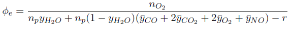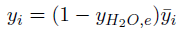 (3)Donde np son la moles de productos, nO2 son las moles estequiométricas de aire, Φ-e el dosado relativo determinado por emisiones contaminantes. La solución de este balance involucra el balance de las especies C, H, N y O, sin embargo los analizadores entregan la composición en base seca. A partir de la Ecuación (4) se obtiene la relación entre la composición en base seca y en base húmeda, yi y
