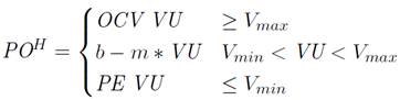 PO H = OCV VU ≥ V max : el Precio de Oferta Hidráulico es igual a Otros Costos Variables cuando el Volumen Útil es mayor o igual al Volumen Máximo. Los OCV representan el Costo Equivalente de la Energía (CEE).
