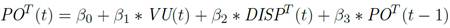 PO T (t − 1): Precio de la energía ofertada por plantas térmicas (gas, carbón, fuel oil) en el tiempo t ‒ 1.