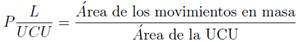 El Método Matricial o Análisis Condicional es considerado como una técni- ca conceptualmente simple altamente compatible con SIG y con resultados que pueden ser fácilmente utilizados por no especialistas, y aplicado a sub- divisiones del terreno denominadas Unidades de Condiciones Únicas (UCU) 25,49. El método considera los factores seleccionados por el especialista que condicionan la ocurrencia de movimientos en masa en el área de estudio. Cada factor es subdividido en clases categóricas, y luego son cruzados todos los factores con el fin de obtener todas las posibles combinaciones de todas las clases de los diferentes factores. Cada combinación específica representa una UCU. Posteriormente la frecuencia espacial y densidad de movimientos en masa para cada UCU es determinada. La probabilidad espacial de la ocurrencia de un movimiento en masa (L) dada una combinación de factores únicos (UCU) está dada por la densidad de los movimientos en masa en la UCU. 25 (ver ecuación (1)).