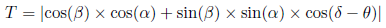 Donde β es el buzamiento de las estructuras o discontinuidades analizadas [0-90°], δ es la dirección del buzamiento, α es la pendiente de la ladera [0-90°] y θ el aspecto [0-360°].