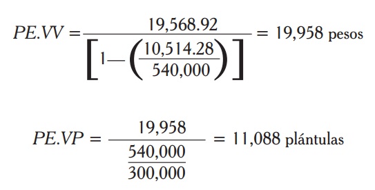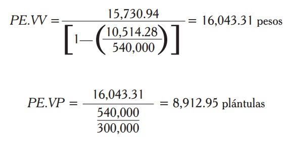 El monto de los ingresos necesarios, para lograr el punto de equilibrio, asciende a $19,958 y una venta de 11,088 plántulas en los 1,036 m. a $1.80 x plántula producida en Peat Moss® al 33 % (figura 1).