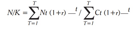 Para evaluar un proyecto de inversión, desde el punto de vista económico, el criterio de decisión del N/K es que debe ser: Si N/K > 1: El proyecto es aceptable; Si N/K = o cercano a 1: El proyecto es postergado; Si N/K < 1: El proyecto no es aceptable. El criterio formal de selección, a través de este indicador, es aceptar todos los proyectos cuyas N/K sean igual o mayor que uno, a la tasa de actualización seleccionada (Muñante, 2002; Romero et al., 2009).
