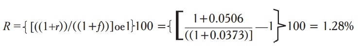 Para el análisis financiero, se tomó una tasa de actualización del 1.28 %, la cual representa la tasa de interés real calculada con base en una tasa nominal de 5.06 % (CETES) y una inflación de 3.73 % anual (pronosticada), para el 2011 (Acus Consultores, 2011). La fórmula que se utiliza para su cálculo es: