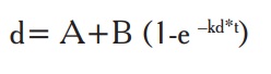 Donde d = degradabilidad a tiempo t, t = tiempo de incubación, A = fracción soluble o rápidamente degradable; B = fracción insoluble pero potencialmente degradable (%), y k = constante de degradación de “B”; DP= degradabilidad potencial (A+B) y DE= degradabilidad efectiva a una tasa constante de pasaje (kp) 0.05.h*1.