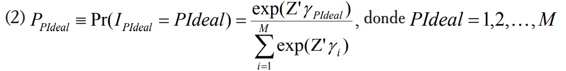 Suponiendo que la utilidad de la i-esima elección es (1): UPIdeal =ΖPIdealγPIdeal +εPIdeal donde Z es un conjunto de características sociales y económicas de cada persona y el acceso a información del individuo adulto. γ PIdeal es el vector de parámetros. εPIdeal es el residuo que captura los errores en la percepción y optimización de la persona.