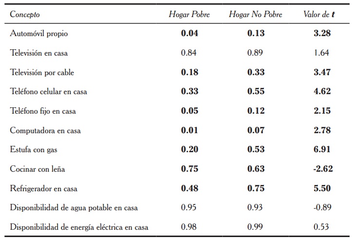 El cuadro 8 muestra la dotación de bienes que dispone cada hogar, diferenciando la condición de pobreza. Es evidente que los hogares no-pobres tienen mayor acceso a la televisión por cable, telefonía celular, teléfono fijo, computadora, la mayoría cocinan con gas, así como la disponibilidad de refrigerador.