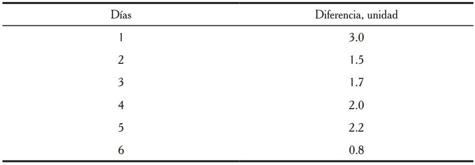 Como el técnico dos resultó el mejor, se realizó un estudio del resultado que él obtenía en diferentes días, sin tener dominio del día que se estaba realizando la investigación ni de la muestra (por duplicado) que analizaba. Se encontró variación entre las muestras paralelas en los diferentes días y el mejor día que trabajó fue el sexto (cuadro 18), aunque el rango de valores fue estrecho (0.8-3.0).