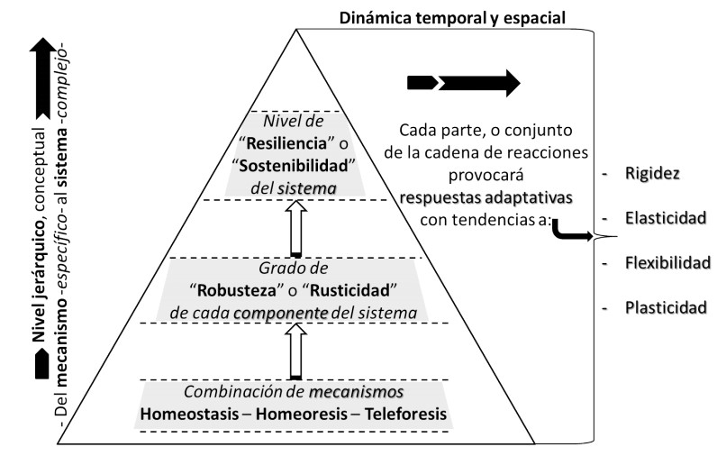 En tal escenario deseable, los diferentes conceptos del enfoque de sistemas y de sus propiedades contribuyen a comprender las perturbaciones que sufre un sistema en sus diferentes escalas, además de conocer las diferentes modalidades de respuestas adaptativas.