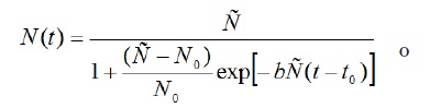 En donde: N(t) es igual a la acumulación de adaptadores de innovación en el tiempo t. Mientras que Nt=t0tntdt, n(t) es el número de los que no adoptan innovaciones en el tiempo t; siendo Ñ igual al número total de los potenciales adoptadores de innovación en el sistema social al tiempo t2, dN (t)dt es la tasa de difusión al tiempo t, g(t) es el coeficiente de difusión y N0 es la acumulación de adaptadores de innovación en el tiempo t0.