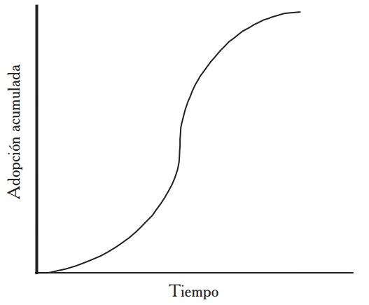 El patrón de difusión de la mayoría de las innovaciones puede ser descrito, en términos generales, como el de la curva de la S; lo único que cambia y varía es la pendiente (figura 2).