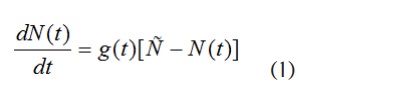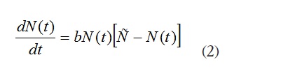 El modelo de difusión de innovación presentado en la ecuación 1, es de tipo determinística de la tasa de difusión; la cual indica la tasa de difusión de la innovación en el tiempo como una función (directamente proporcional) en la diferencia entre el número total de posibles adaptadores de innovación existentes y el número de los previos adaptadores de innovación al tiempo Ñ-N(t) (Mahajan y Peterson, 1985).