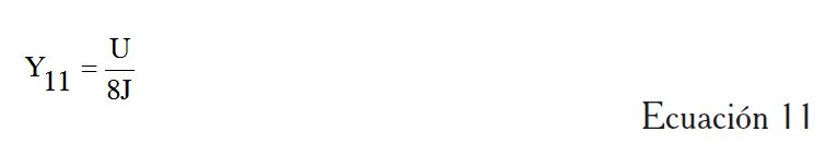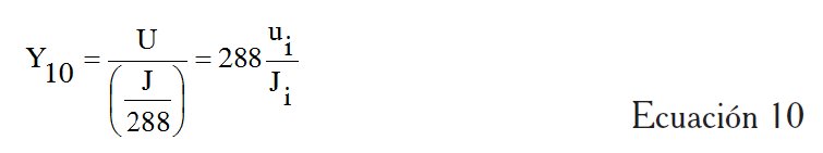 La variable Y10, expresa la ganancia obtenida por trabajador, donde el numerador es la utilidad “U” generada por cultivo descrita en Y5, y el denominador, que proviene de dividir el número de jornales “J” por hectárea entre 288; el cual representa el número de empleos permanentes generados por el cultivo en una hectárea. El número 288, proviene de considerar que, socialmente, una persona trabaja seis jornadas por semana durante 48 semanas al año, es decir, 288 jornadas año-1.