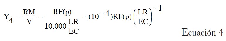 La variable Y3 muestra la relación entre la cantidad de agua empleada en el riego (V) y el ingreso monetario “RM” (en US$ ha-1) que se generó al emplear ese volumen de agua. Donde el numerador de esta ecuación es el mismo numerador de Y1, y el denominador, RM es igual al producto de RF por el precio “p” (en $ kg-1). Se expresa en metros cúbicos por dólar $ de ingreso bruto producido, o en litros por $ de ingreso bruto por el cultivo.
