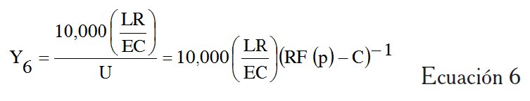 La variable Y6 es la inversa de la variable Y5: tiene un significado diferente, pues se expresa en metros cúbicos o litros de agua irrigada por dólar $1 de utilidad.