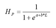 Where: HP = percentage of females or males sexually mature, a and b are constants. Its logarithmic transformation is: ln(1(1/Hp-1)) = a-b ∙ TL, and the length at which 50% of the population is sexually mature (L50) corresponds to: L50 = a/b. The original equation is modified to include L50: Y = 1/[1+a(1-TL/L50)].