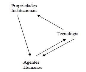 Frente à necessidade de melhor compreender a relação entre estratégias de sustentabilidade e as práticas verdes aplicadas à área de TI, desenvolveu-se a presente pesquisa que tem por objetivo analisar a adoção da TI Verde nas organizações, examinando os diferentes motivos de adoção, as práticas aplicadas na área de TI, os benefícios percebidos e as principais dificuldades enfrentadas na sua difusão. Para tanto, foram conduzidos três estudos de caso com empresas de diferentes setores econômicos, sendo fundamental o estudo de Orlikowski (1992) para o correto enquadramento teórico da investigação. Ao sugerir que a tecnologia seja entendida do ponto de vista da Teoria da Estruturação de Giddens (1984), Orlikowski (1992) propõe que esta deve ser considerada como uma propriedade estrutural das organizações que desenvolvem ou usam tecnologia. Sob esta perspectiva, conforme mostra a Figura 1, propriedades institucionais influenciam os atores humanos na sua interação com a tecnologia – projetando-a, desenvolvendo-a, apropriando-a e modificando-a. Dentre as propriedades institucionais das organizações, estão dimensões organizacionais como estratégias de negócios, ideologias, cultura, mecanismos de controle e, também, pressões ambientais, entre elas: regulamentações governamentais, normas profissionais, estado de conhecimento da tecnologia e condições socioeconômicas.