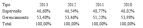 As informações divulgadas nas atas relatam as atividades que os Conselhos têm desempenhado ao longo dos últimos anos. Enquanto a literatura normalmente apresenta modelos dominantemente gerenciais ou supervisórios, os dados sugerem que, no Brasil, essa separação não ocorre de forma tão clara: ao contrário, os números médios não distam mais que 8%. A Tabela 6 descreve a proporção do tipo de decisão em relação ao total, demonstrando a estabilidade, ao longo dos anos, entre os tipos de papel.
