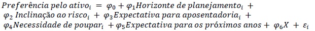 O trabalho concentra-se na identificação de associações entre preferência por determinados ativos, tais como ativos de renda fixa, renda variavel, imóveis, entre outros com disposição ao risco e expectativas dos cidadãos mediante o controle para variáveis demográficas, em linha com agenda de pesquisa apontada pela literatura de finanças no nível pessoal (Hoffmann, et al., 2013; Mugerman, Ofir, & Wiener, 2016; Necker & Ziegelmeyer, 2016; Taylor et al., 2010; Weber et al., 2013; Zick, Mayer, & Glaubitz, 2012).