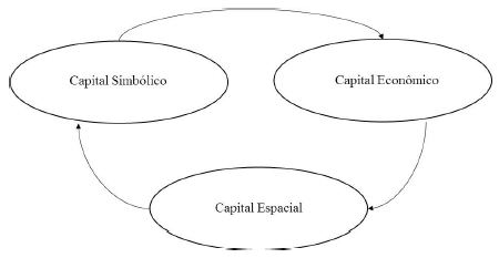 Portanto, o que se observou foi que os programas com maior concentração de capital econômico têm mais facilidade para redistribui-lo por meio do acúmulo do capital espacial. Quando esta é a via de redistribuição privilegiada, amplia-se o potencial de transformação do capital econômico em capital simbólico, o que corresponde a uma maior legitimidade dos agentes. Por sua vez, a legitimidade serve como um atrativo para maiores investimentos financeiros, contribuindo para um maior acúmulo de capital econômico.