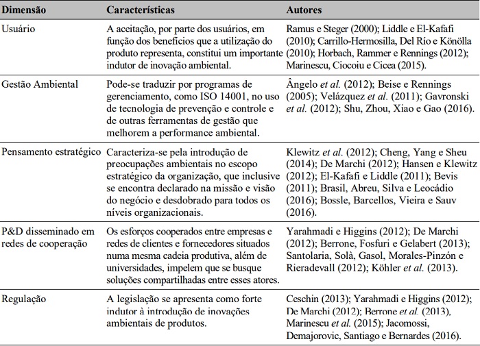 A fim de sintetizar as contribuições da literatura e expor as características e determinantes da temática da inovação ambiental, é apresentada a Tabela 3: