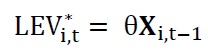 Based on previous studies (e.g., Flannery & Rangan, 2006), we employ a partial adjustment model to estimate companies’ annual speed of adjustment to a target level of leverage, which, in turn, is a function of several lagged firm variables, represented by the vector X and its respective parameter θ in equation (1):