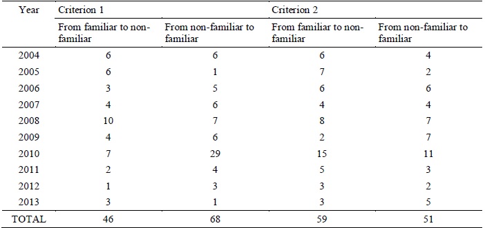 An alternative explanation that could be driving our results is related to the fact that, over time, some successful family firms have become non-family firms due to mergers, acquisitions, or new equity issuances. As we can see from Table 8, several family firms became non-family, and vice versa, within the period under analysis. For example, according to our criterion 1 (LUS is a family regardless its shareholding), 46 family companies became non-family companies and 68 non-family companies became family companies. Thus, one may argue that our analyses are merely contrasting capital structure issues between the most successful family firms of the recent past — that are no longer family firms — to those firms that remained as family firms and that are, possibly, less successful.