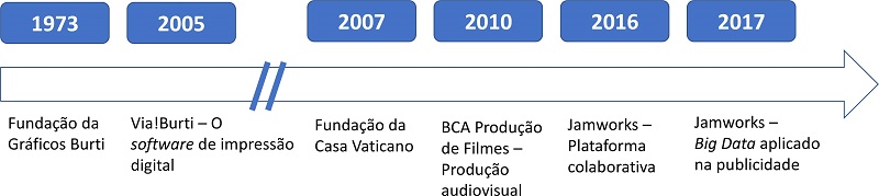 Foi nesse ambiente de inovação que, aos 16 anos, Leandro Burti começou a trabalhar no setor de compras da empresa. Atuou também nos setores de vendas e de produção e, finalmente, assumiu a vice-diretoria e procedeu a uma análise do mercado, quando surgiu a percepção de que o setor gráfico brasileiro estava se alterando, pois, de acordo com seu próprio relato de Burti: “vi nas revistas os anúncios diminuindo e vi os banners crescendo na internet. Eu falei ... o negócio está migrando. O dinheiro está mudando de mão.”