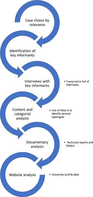 The interviews were conducted face to face, recorded and transcribed in full. They rendered a total of 68 pages transcribed in full. Respondents' permission was requested to record the conversations. The anonymity of the respondents was maintained and the codename was assigned to each of them, as described in Table 2. The interview period occurred from January to May 2017 and was conducted by the authors of this article. The analysis of the data followed the thematic categorisation, following the precepts of Bardin (2011). Figure 1 shows the steps that were followed to elaborate the case described in this study.