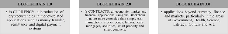 This categorization (Figure 1) identifies a strong possibility of the use of this technology in order to involve various fields of knowledge besides financial. Therefore, in view of this concept, characteristic and potential applications it is understandable why many consider it as the business internet. In addition, more directly, the decentralization stands out, according to Wright and De Filippi (2015), it can affect the way Governments, organizations, and society at large operate.