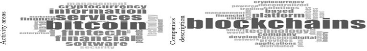 Even with this assembly related to the area of expertise of the organizations appearing in the database analyzed, we have observed that most of the companies are related to finance and technology. With regard to it, we present Figure 7 which features a word cloud about the areas of expertise of each organization and a word cloud about their descriptions.