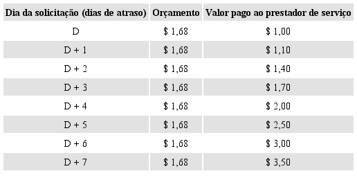 Mesmo estando acima do orçamento, os valores pagos aos PSLs estão abaixo dos do mercado. Este fato é encarado sem prioridade pelos PSLs, que aceitavam o serviço apenas quando não havia outro de maior rentabilidade. Como a empresa ajusta sua tabela de valores de acordo com a urgência na entrega (Tabela 3), os PSLs são tendenciosamente direcionados a aguardar uma oferta de serviço da empresa contratante com valor maior do que o inicialmente previsto. Estas evidências levam a empresa em estudo a uma situação de dificuldade de entregas no prazo proposto. Por fim, as entregas livres de erros e atendimentos completos não se apresentam como um problema à empresa (Tabela 6).
