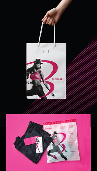 In 2017, the company changed its visual identity through the Design Export Program - developed in partnership with Apex-Brasil and the Centro Brasil Design (CBD). Packaging was standardized so the brand name is always presented in the same way for clients, shopkeepers, representatives, and final customers. Training bags, plastic bags, tags, paper bags, and gift boxes had their design changed in order to become means of communication with the brand (Figure 4). The company Néktar Design, responsible for the project, used the concept of Pink Power to develop this new identity. A market research identified the need to change the presentation, which was based on an image of the Brazilian female coming from abroad. The new design changed the focus to the strength of the women’s movement, through the image of Brazilian women with confident attitude and protagonism. According to the manager of the design company, “the brand appropriates the color pink as a strong element of its identity. However, it is not a delicate rose, it is a strong, striking, powerful rose. The pink rose symbolizes the woman, but not the woman as a fragile sex, but the woman with confident attitude, a protagonist. We call Pink Power the visual appeal of black-and-white photos with a few highlights illuminated with pink”.