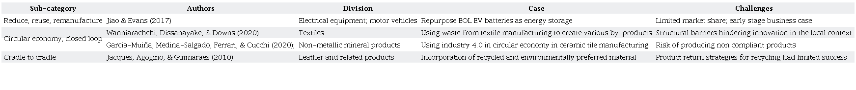 García-Muiña, Medina-Salgado, Ferrari and Cucchi (2020) and Wanniarachchi, Dissanayake and Downs (2020) studied circular economy in local contexts of manufacturing. Wanniarachchi et al. (2020) investigated the sustainable and ethical manufacturing practices of Sri Lankan textile manufacturer. The companies focused on employing fair trade practices and using 100% of textile waste to create various by-products for export. This approach enabled product and market diversification. In this context, structural barriers and lack of access to markets and innovation hinder growth. On the other hand, García-Muiña et al. (2020) evaluated the transition to a sustainable model for ceramic tile production in Italy. They noted that this transition was facilitated by industry 4.0 tools, enabling increased efficiency and monitoring of manufacturing processes, hence, the environmental benefits could be quantified. If the technological performance of the product is not considered when implementing sustainable business models, there is a risk of creating a subpar product.