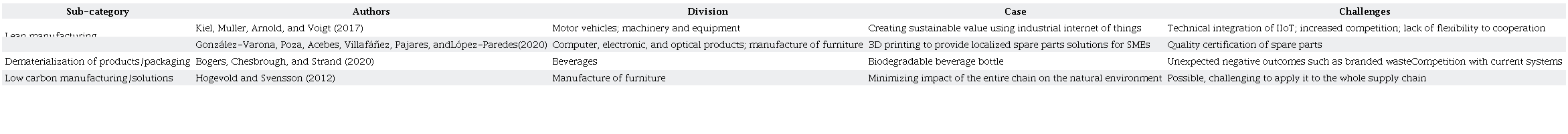 Resultados: os resultados indicam que há algum trabalho empírico realizado na investigação das dimensões sociais e ambientais da sustentabilidade na manufatura. No geral, há uma transição contínua para modelos de negócios sustentáveis em várias divisões da indústria. No entanto, a criação e entrega de valor econômico sustentável ainda são inexploradas.