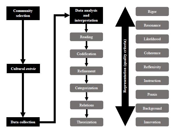 The immersion in an online culture that is adaptable to the environment and focused on the context is the main feature of this method. Thus, researchers perform observation and participation activities in the investigated virtual community through computer-mediated communication platforms such as social networks and forums (Kozinets, 2010). The method provides the means to observe textually-accessible behaviors and, consequently, to understand symbolic meanings, attitudes, and discourses found in virtual consumption communities. Its main aim is to identify behavioral patterns and forms of social interaction in online communities linked to consumer practices (Kozinets, 1998). The current study has followed the guidelines by Kozinets (2010, 2015), in order to operationalize the research, as seen in Figure 1.