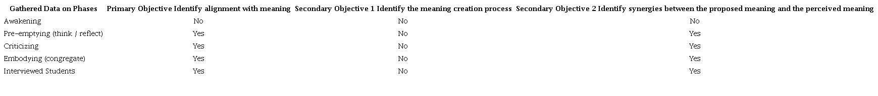 These findings support the existence of a meaning strategy but did not contribute to identifying how the meaning was created, although it is experienced as a symbolic value by managers and teachers. The process of ‘auto-reflection’ described in this phase can also support the evidence that the managers embodied (last phase of the meaning process of the research methodology) the meaning.