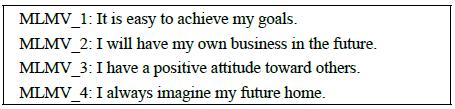 The model uses variables discussed in the academic literature as described in Table 1, including the measured marker latent variable (MLMV), which was created by the authors to monitor (check) the bias of the common collection method.