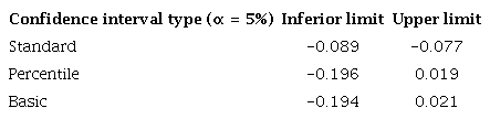 The p-values were estimated by bootstrap (n = 256 and 5,000 repetitions).
