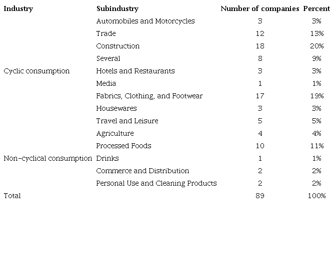The research sample consists of 89 Brazilian companies listed in Brasil Bolsa Balcão (B3), with 70 companies in the cyclical consumption sector and 19 companies in the non-cyclical consumption sector (Table 2). The sample cut is justified because marketing investments build greater equity for consumer goods companies, compared to companies in other sectors (Oh et al., 2016), and marketing investments can influence demand and consumption, impacting financial results (Sydney-Hilton & Vila-Lopez, 2019).