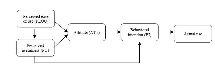 Additionally, innovation adoption rate may be influenced not only by its objective characteristics but also by its subjective ones, in addition to adopters’ individual aspects (Rogers, 2003). TAM (Davis, 1989) is considered the basis for technology acceptance’s concept, and it is currently adopted in several studies (Ferreira, Rocha, & Silva, 2014). According to Davis’ (1989) original model, technology acceptance refers to a consumer’s behavioral intention (BI) to use a specific technology, which will lead to its actual use. Behavioral intention is directly influenced by consumers’ attitude (ATT) toward using the technology. Attitude determinants are the cognitive responses to external stimulus based on consumers’ perceptions of a technology’s ease of use (PEOU) and usefulness (PU). Usefulness is also directly influenced by ease of use (Davis, 1989; Davis, Bagozzi, & Warshaw, 1989), as shown in Figure 1.
